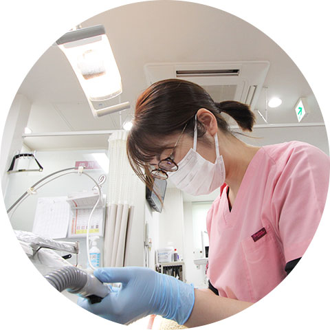 口腔内の治療は、一面的な専門分野のみでの対応では不十分な場合があります。とくにインプラント埋入治療では、さまざまな分野の知識が重要なポイントになります。当院では、歯周病や矯正歯科の知識をもつ院長をはじめ、口腔外科に精通している医師などが在籍しています。さらに、研修や講習で研鑽を積んで専門的な知識や技術を習得した歯科衛生士もおり、インプラント埋入治療に詳しい歯科医師3名、歯科衛生士6名でインプラントチームを結成しています。また、麻酔医や歯科技工士とも密に連携を取っており、チーム医療体制を敷いて適切な治療を行なっています。